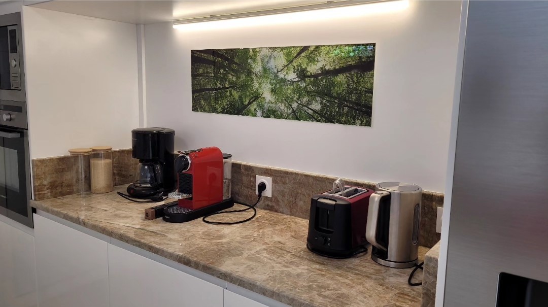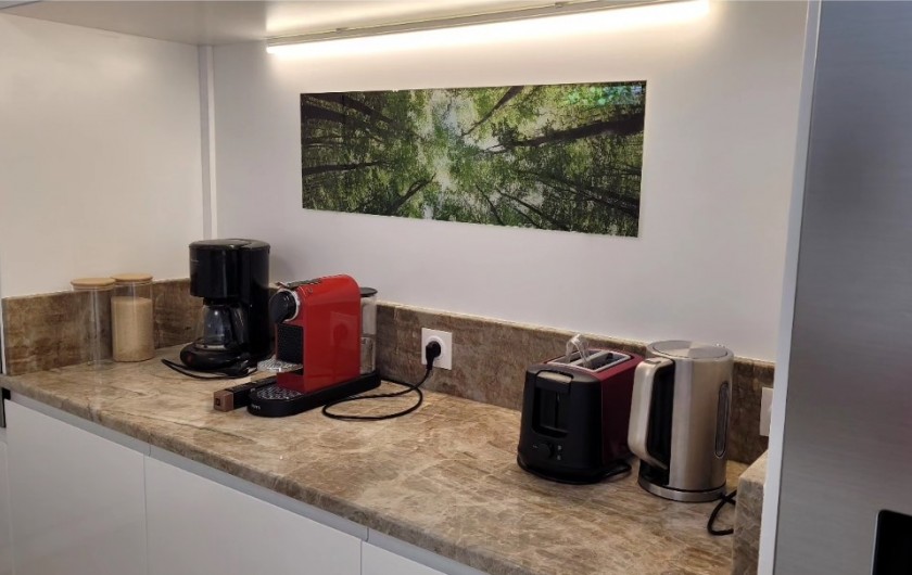Ménager : Vaisselle et couverts. Plaque vitrocéramique - Réfrigérateur US avec glaçons - Four micro ondes - Four - Ustensiles de cuisine - cafetières standard & Nespresso - Lave vaisselle - Lave linge - Sèche-linge - table & Fer à repasser - Petit électroménager complet - coffre-fort.