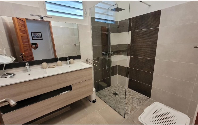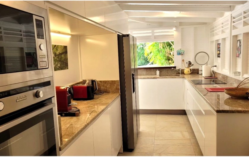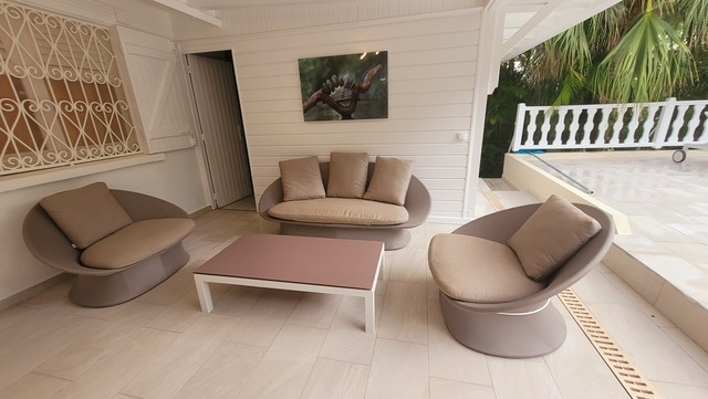 Cuisine équipée avec citerne d'eau douce, double salon avec brasseur d'air, équipés d'un salon TV & d'un espace bureau avec imprimante & Wifi illimité via fibre optique, 2 chambres climatisées, dont une indépendante accessible depuis la galerie, avec salle de bains individuelles (douche italienne), 2 WC dont 1 indépendant, piscine avec escalier et barre de descente, grande galerie/warengue avec brasseur d'air, espace repas / salon et bar, belle terrasse avec piscine, jardin clos et arboré, parking privatif.