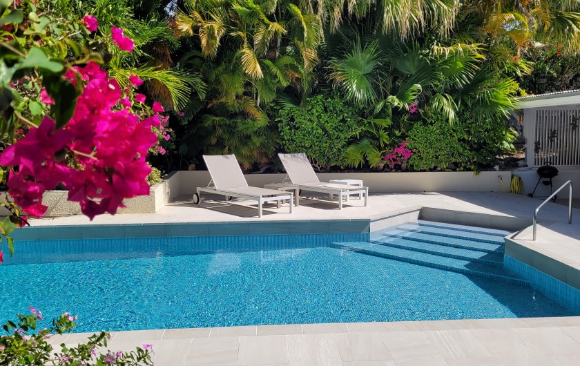 Piscine privée au sel : 8*4m (avec marches et rampe d'accès) - profondeur : 50cm à 1.70m avec sécurité barrière amovible.