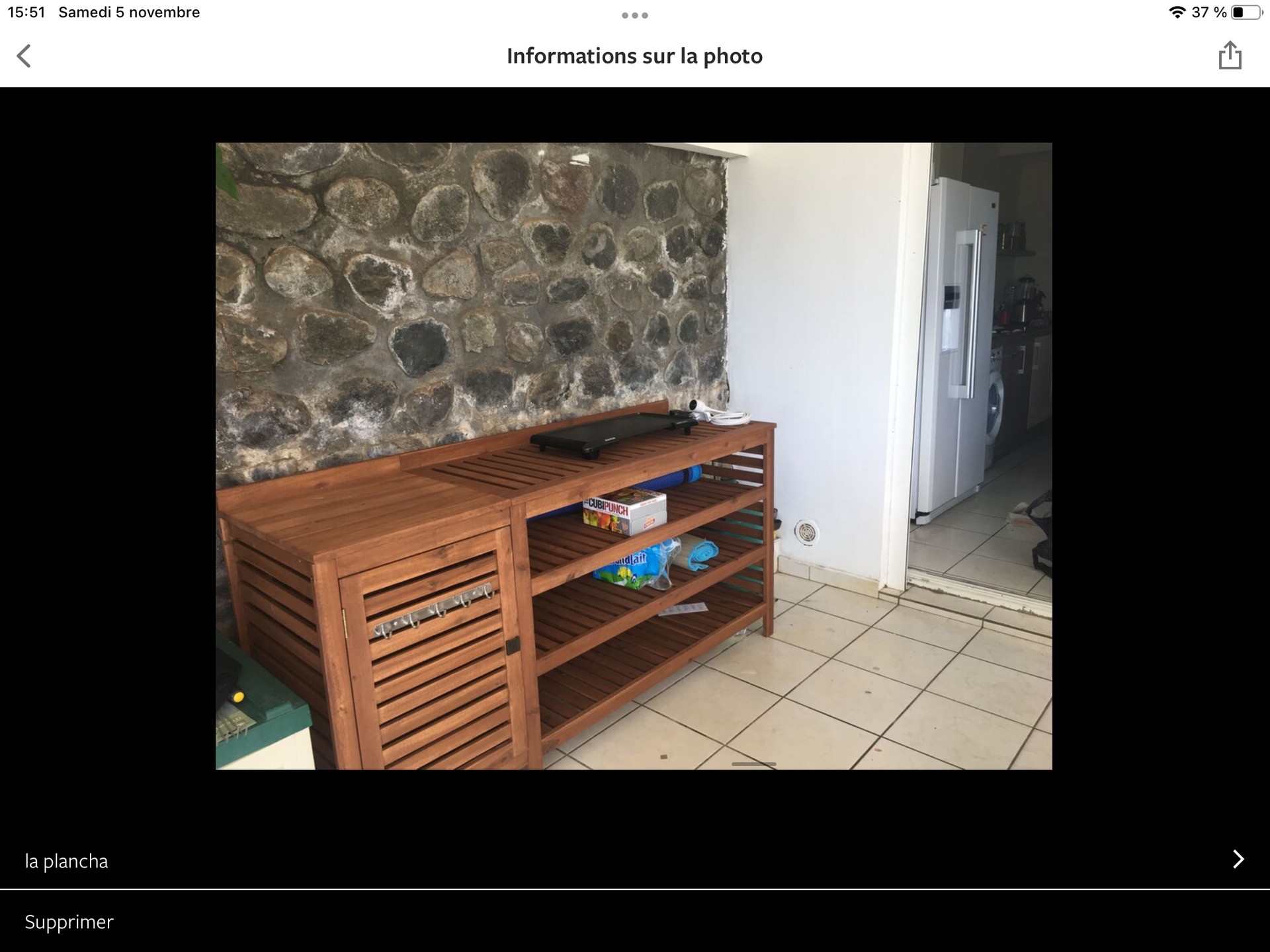 La cuisine est entièrement équipée : cafetière senseo, frigidaire américain avec distributeur d'eau et de glaçon, four combiné, plaque 4 feux gaz, lave-vaisselle et lave-linge.