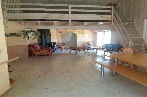 Belle maison en bois avec de grandes baies vitrées au sud donnant sur une grande terrasse bois plus piscine de 8,00ml x 5,00ml recouverte d'un abri téléscopique manuel. Aménagement par des massifs paysagés et d'arbustes d'essences locales, d'un espace gravillonné pour jeux, de stationnement pour véhicule avec préau fleuri.