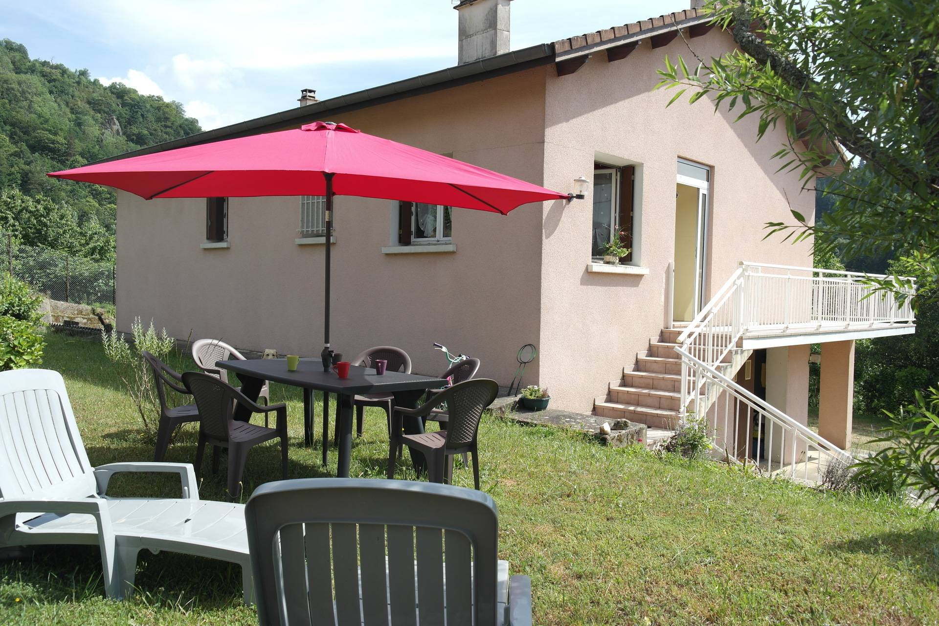 Location d'une maison idéalement située sur la Dolce Via , voie verte qui relie la Viarhôna , en pleine campagne dans le joli hameau de Créas , CALME ASSURE , vue imprenable et magnifique , 400m d'altitude , exposition plein sud , 4000 m2 de terrain clos , arboré et PRIVATIF.