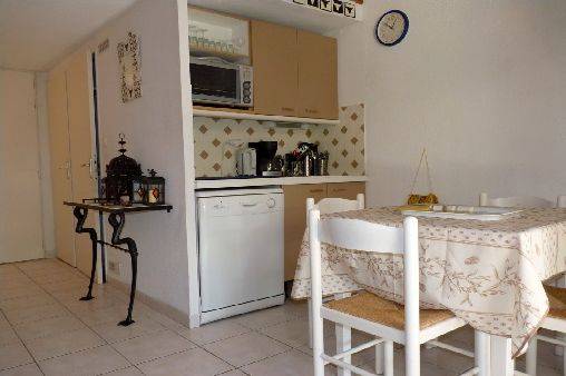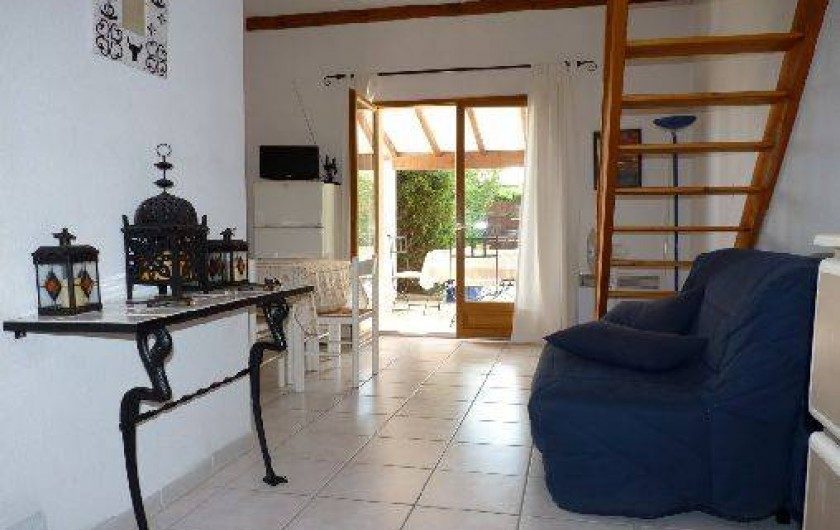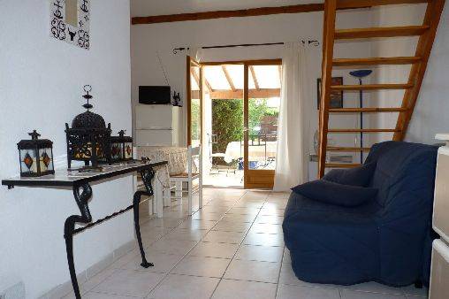 villa en copropriété avec piscine (ouverte de mai à octobre) à Saint Laurent d'Aigouze (proche Aigues-Mortes, le Grau du Roi). Villa de 40 m2 avec 1 pièce principale avec coin cuisine équipé (lave vaisselle, machine à laver, TV etc...), chambre indépendante, mezzanine de