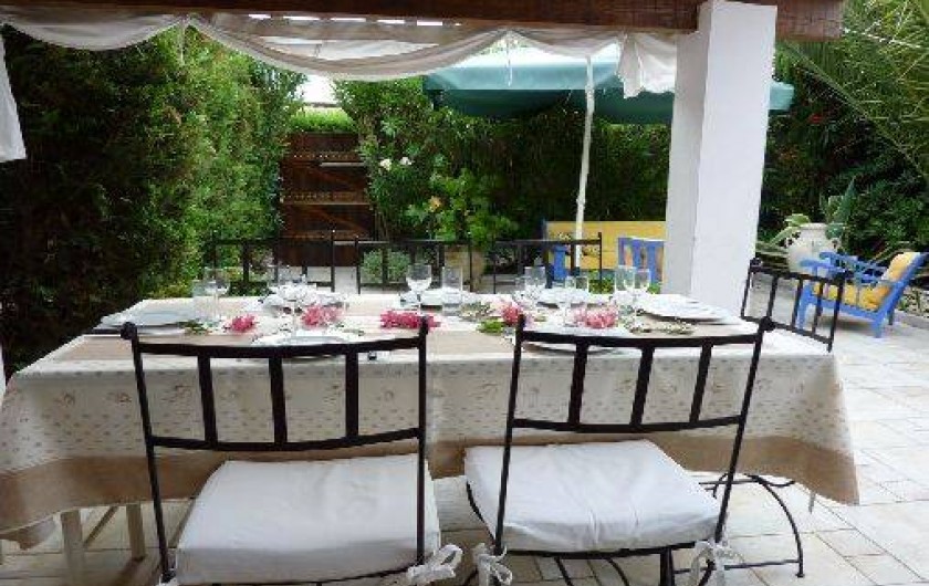 12 m2. Jardin clos et isolé de 100 m2 avec pergola et grande terrasse. la copropriété est sécurisée par un portail éléctrique à télécommande. Le logement se situe à 5 min à pied du centre du village avec tous commerces et supermarché