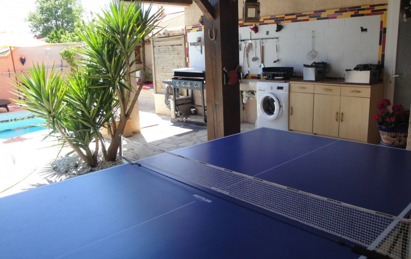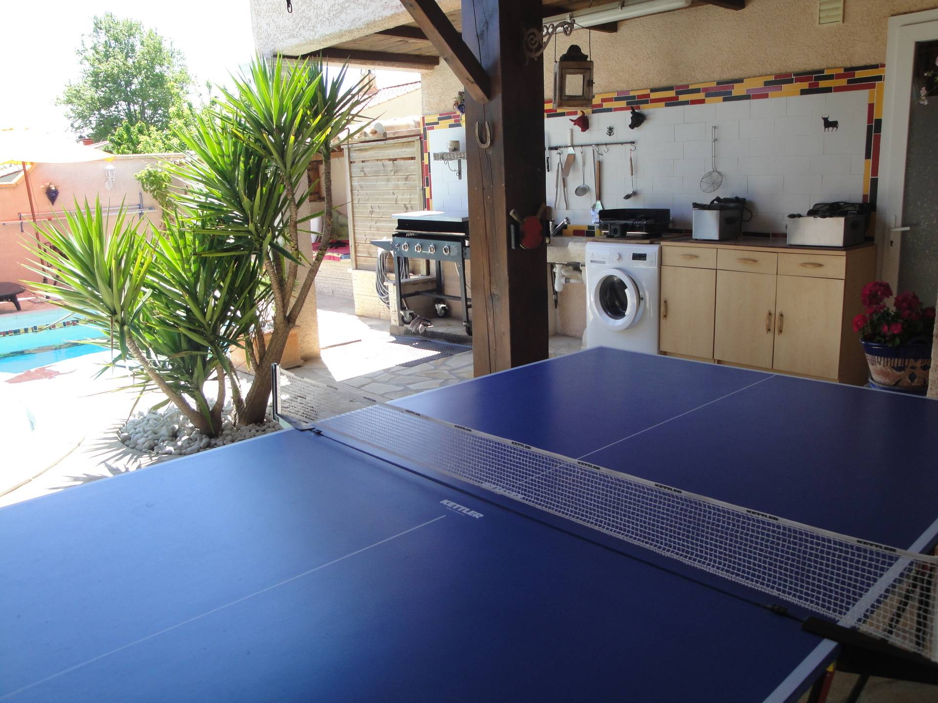 :- 1 cuisine d’été : avec grande plancha, évier, friteuse, machine à laver, 1 douche et 1 WC extérieurs