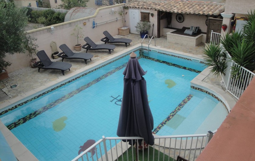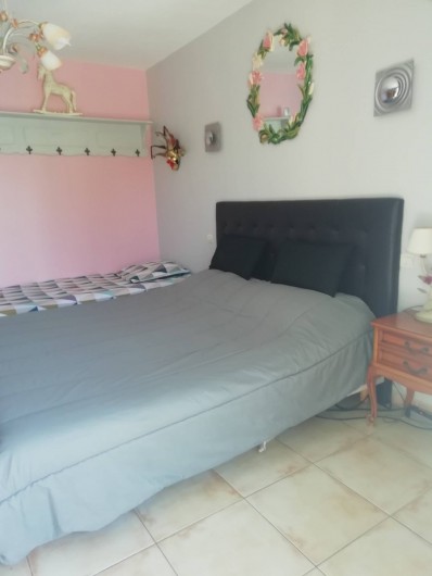 - 1 chambre : un lit (2 places) électrique + 1 clic clac : (1 personne) avec télé, vue sur la piscine