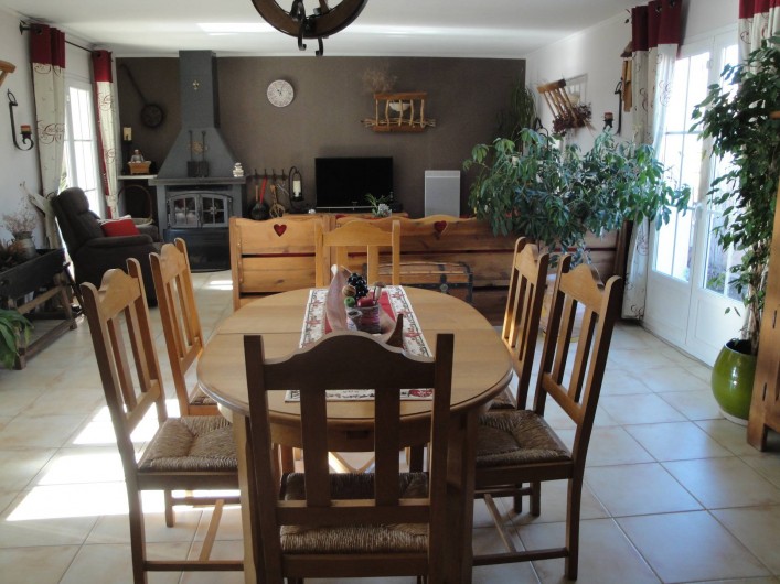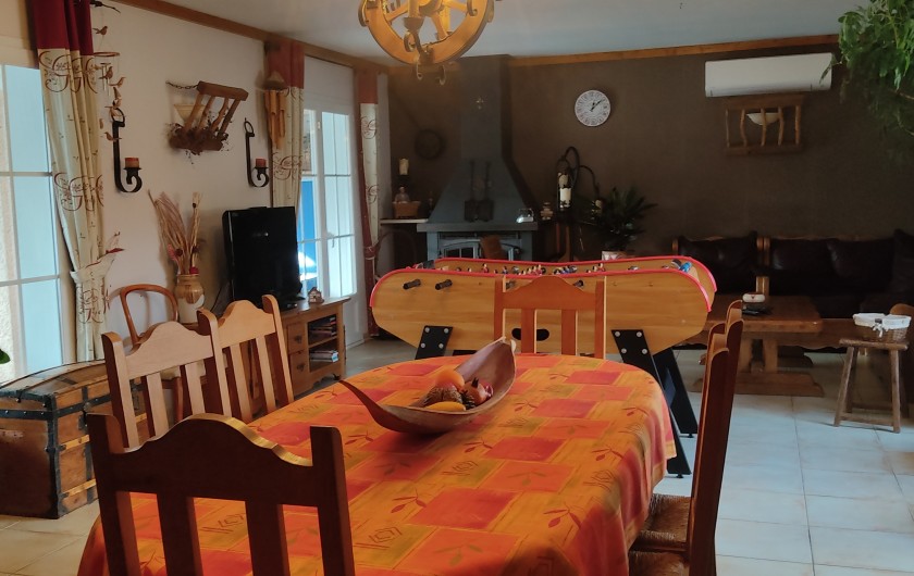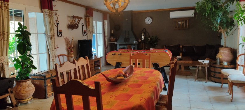- 1 salon et salle à manger : pièce de 40 m2 , insert feu de bois, grand écran plat, lecteur DVD, salon d’angle + un baby foot adulte