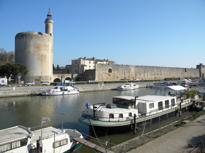 Situation géographique dans le GARD, Languedoc-Roussillon, accès : voiture, TER, TGV .Aéroport à NIMES et MONTPELLIER, bus : 2 arrêts possibles à 300 m. 9 kms : AIGUES MORTES.14 Kms : Plage du GRAU DU ROI. 18 Kms Plage de LA GRANDE MOTTE. 28 Kms : Plage de PALAVAS LES FLOTS, 35kms : NIMES, les STES MARIES DE LA MER, MONTPELLIER