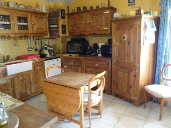 - cuisine toute équipée : frigo + congélateur, lave-vaisselle, 4 plaques vitro-céramiques, four à pyrolyse, micro-ondes, etc…