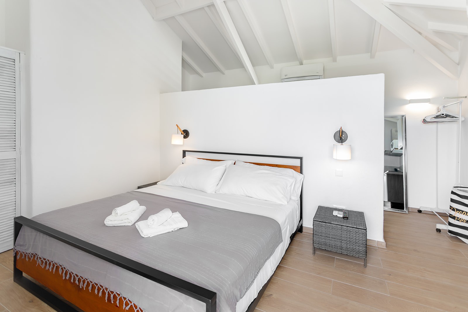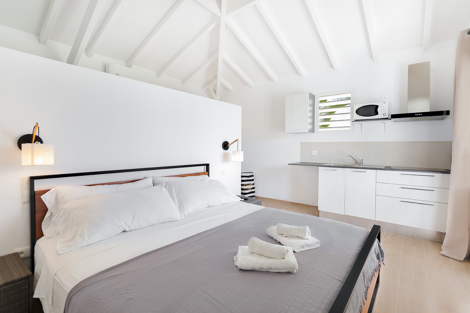 La 3ème chambre séparée, lit king size, salle d'eau dispose également d'une kitchenette et peut faire office de studio indépendant, elle communique également avec la terrasse.