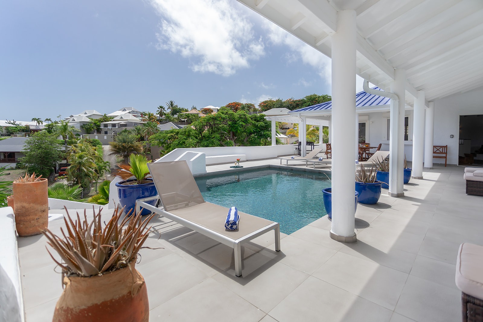 Toutes les pièces de la maison s'ouvrent sur la superbe terrasse avec salons de jardin, grande table pour les repas et transats autour d'une magnifique piscine à débordement.