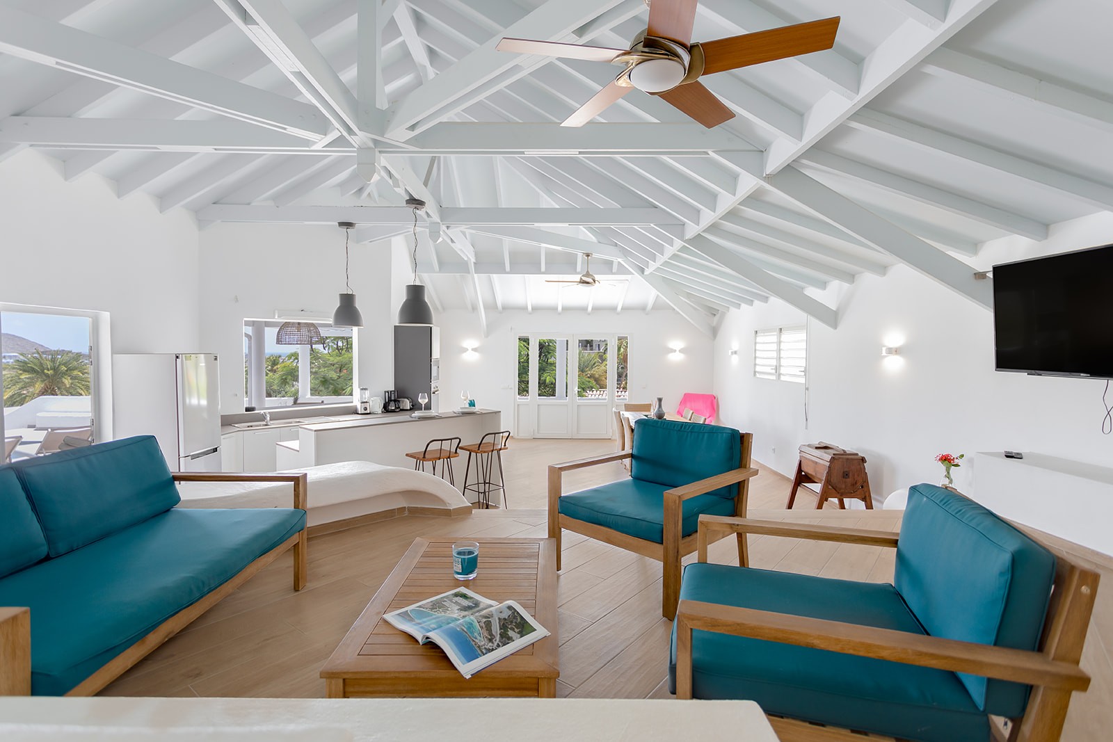 La pièce de vie est totalement ouverte avec coin salon TV, salle