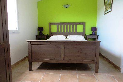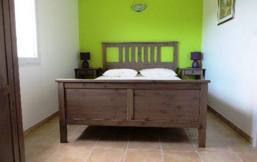 1 chambre orientée au sud ouest, avec un lit de 140 cm et 1 armoire, 1 grande fenêtre avec volet.