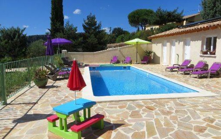 Espace piscine entièrement clôturé, orienté au sud pour profiter pleinement du soleil :