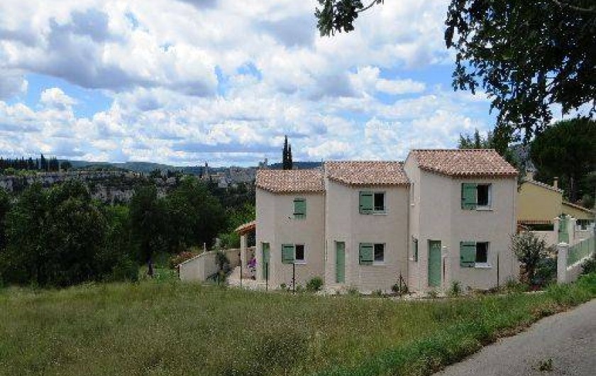 Situation calme, à 700 m du village et de l'Ardèche avec une vue magnifique sur le village médiéval d'Aiguèze.