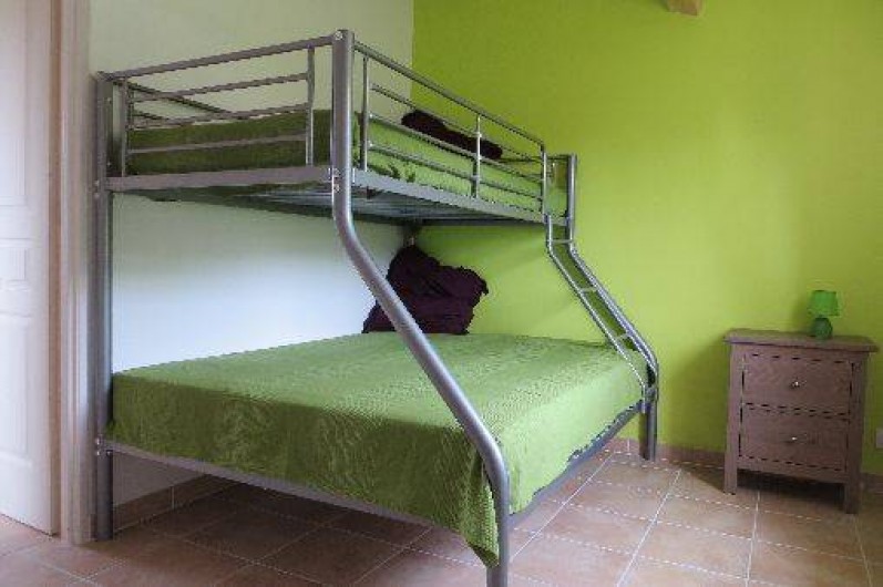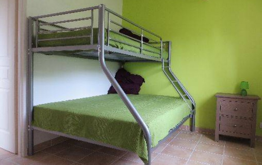 1 chambre orientée au nord est, avec un lit superposé 140/90 cm et 1 armoire, espace pour un lit bébé (sur demande), 1 fenêtre avec volet.
