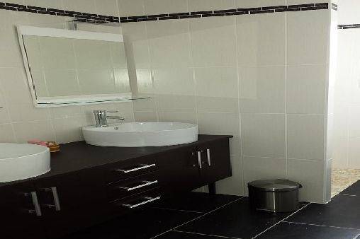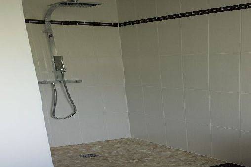 une SDB (2 vasques, sèche-serviette, douche à l'italienne).