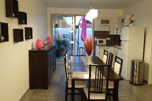 Maison pouvant accueillir 8 à 10 personnes (canapé convertible), avec 2 parties nuits et sanitaires séparées.