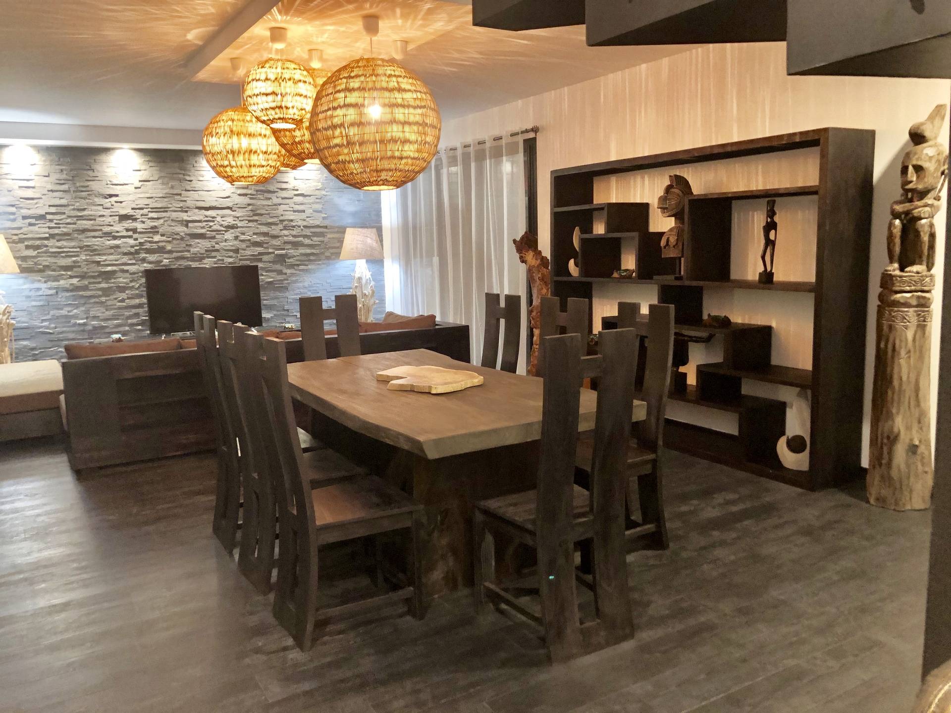Tous les meubles en teck et la décoration sont en provenance direct
