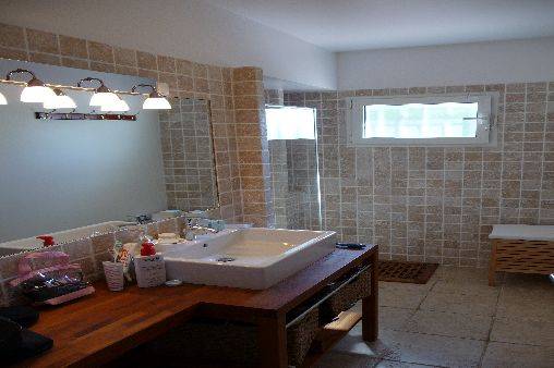 grande terrasse plein sud: Grand séjour, 5 chambres climatisées, 4 salles de bain/douche, 2 wc, cuisines équipées, 2 tv, wi-fi, etc... Pour votre farniente au soleil ou à l'ombre, 2 salons en teck, transats, parasols, barbecue..
