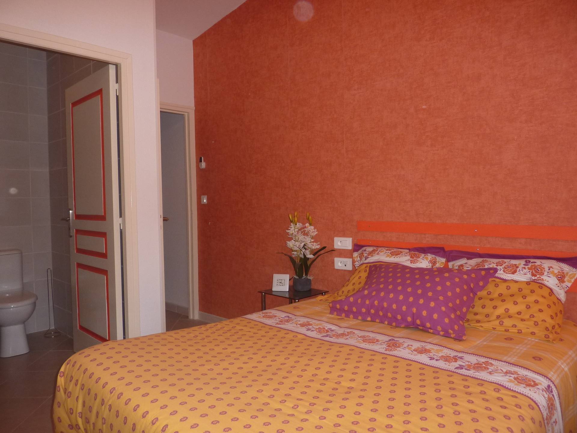 - 2° Suite orange : lit de 140 cm + bureau + penderie
