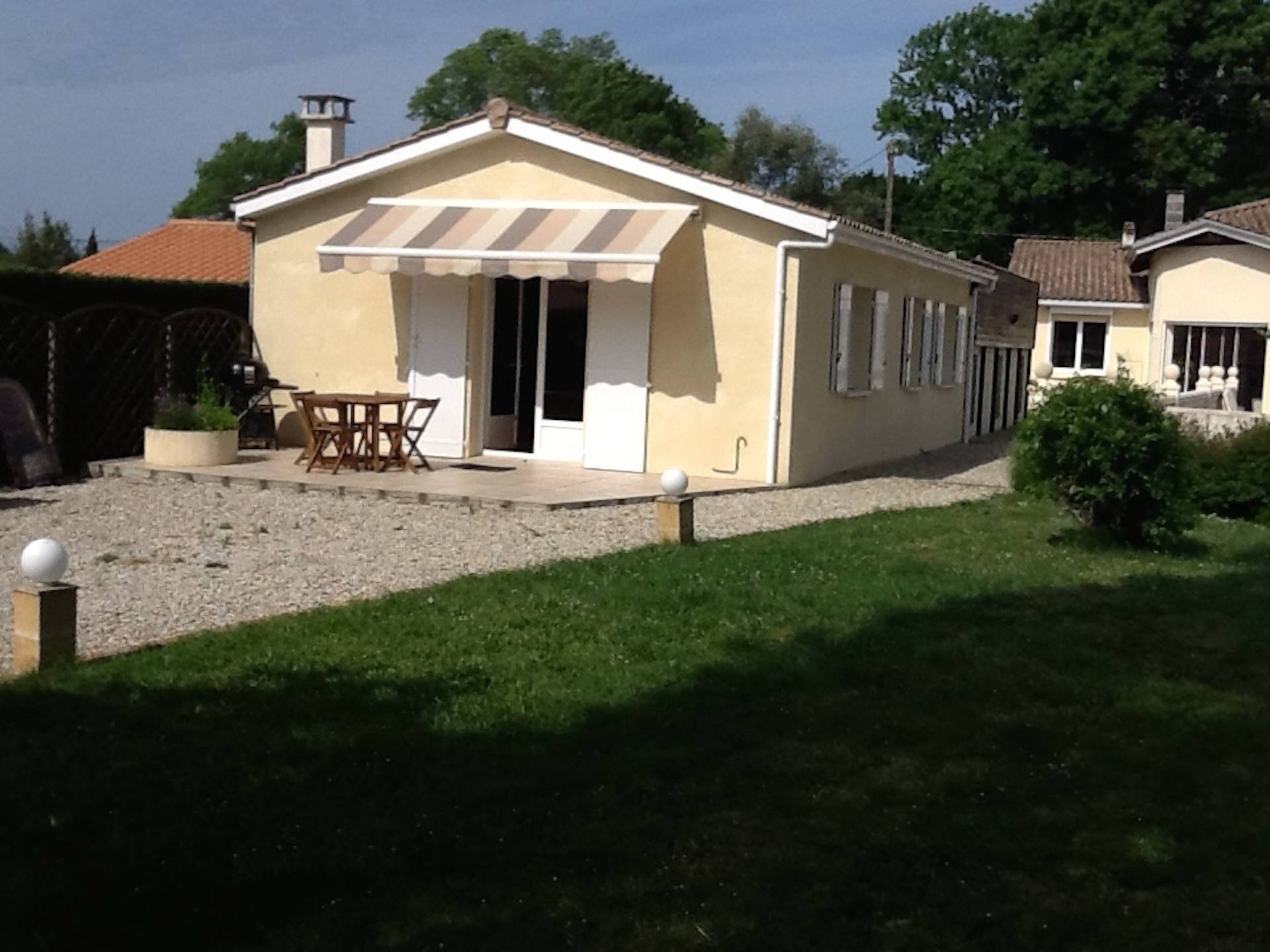 A 10 mn des grandes plages et à proximité des vignes du Médoc, petite maison récente pour 2 à 4 personnes, totalement équipée dans propriété avec piscine, comprenant un salon avec télévision grand écran et canapé convertible en lit 2 personnes, une chambre avec grand lit et dressing, une cuisine équipée (four, plaque vitrocéramique, lave-vaisselle, micro-ondes), une salle-de-bains avec douche à l'italienne, une buanderie avec machine à laver et sèche-linge, centrale vapeur, une terrasse avec auvent électrique, meuble de jardin et barbecue, parking privé à l'intérieur de