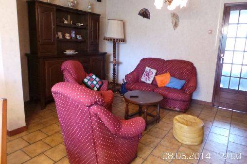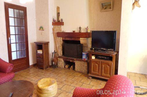 Un grand séjour salon avec cheminée, salon et une grande table côté salle à manger un écran plat de 97cm permet de voir la TNT.