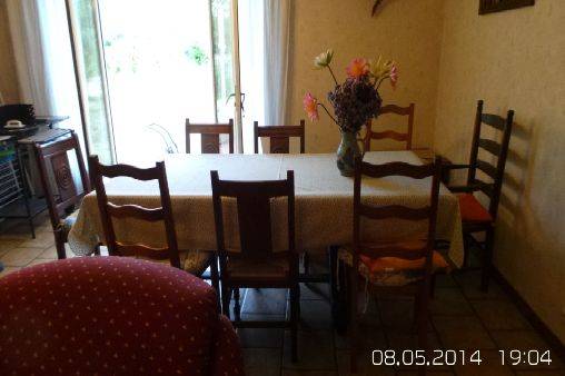 Sur une pelouse entretenue à l'abri de deux magnifiques mimosas, un barbecue et un salon de jardin permet de manger à l'ombre, une haie touffue isole de la rue.