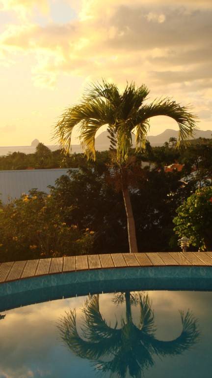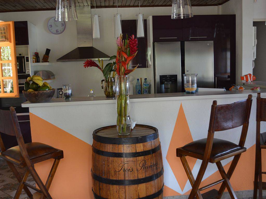Mangoo Passion offre une vue imprenable sur la baie de Sainte-Anne et du Marin. Elle se situe à quelques minutes à pied de la plage. Entièrement rénovée en 2012 la maison dispose de 3 chambres climatisées, 2 salles de bains, un salon avec écran plat, WI-FI, chaîne hi-fi. La cuisine américaine flambant neuve est équipée de plaques de cuisson, d'un four traditionnel, d'un réfrigérateur américain avec une partie congélateur, d'un lave-vaisselle. Toutes les pièces sont équipées de ventilateurs plafonniers. Un immense balcon composé d'un espace repos avec fauteuils et table basse … ainsi que d'une table pour manger, vous permettra d'admirer la vue tout au long de votre séjour. Le jardin composé de magnifiques plantes tropicales et la piscine avec ses chaises longues vous invite à la détente à tout moment de la journée. Maison idyllique pour passer des vacances en famille pouvant accueillir jusqu'à 8 personnes. Attention, cette maison est non fumeur !!!! Lire moins Lire la suite