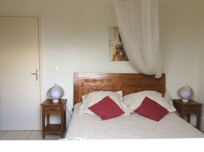 chambre 1 parentale, climatisée avec salle de bain attenante (douche, lavabo, wc suspendu, armoire/penderie lit 160x200