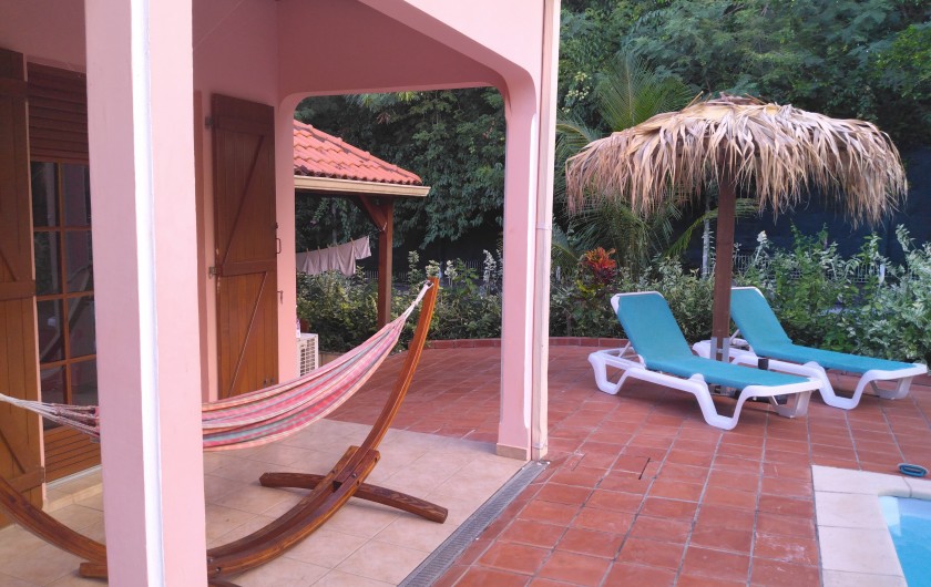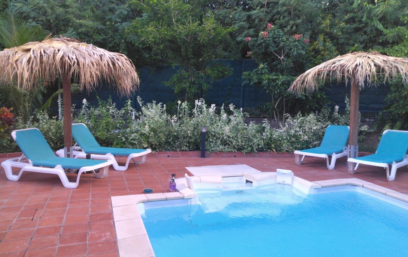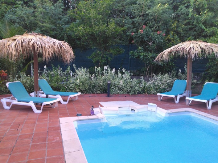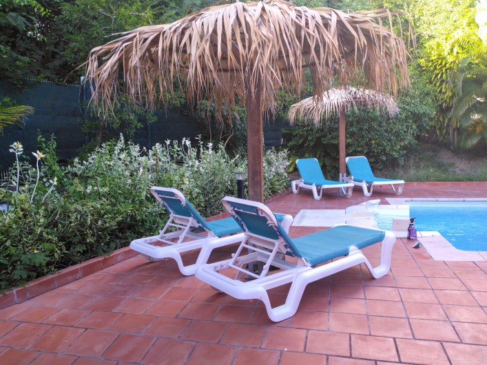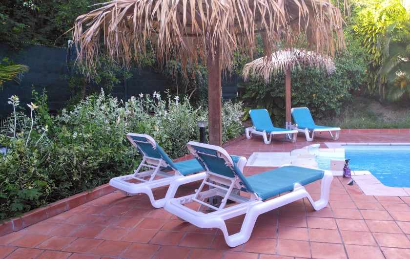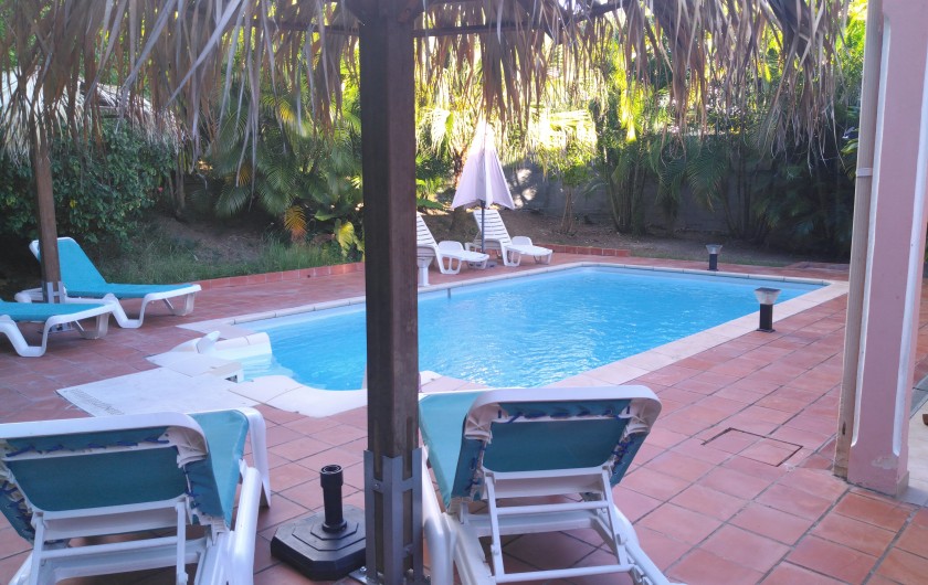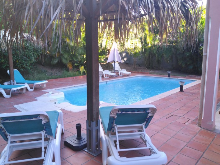 Cette villa de standing bénéficie d'une très belle piscine privée sans vis-à-vis 7 m x 3.50 m, , bordée d'une large terrasse en bois de 110 m2 avec un espace ombragé pour les heures les plus chaudes, de 8 transats, une douche extérieure, un hamac, un salon d'extérieur canapé pour vos moments de détente et d'une grande table à manger pour 8/10 personnes.