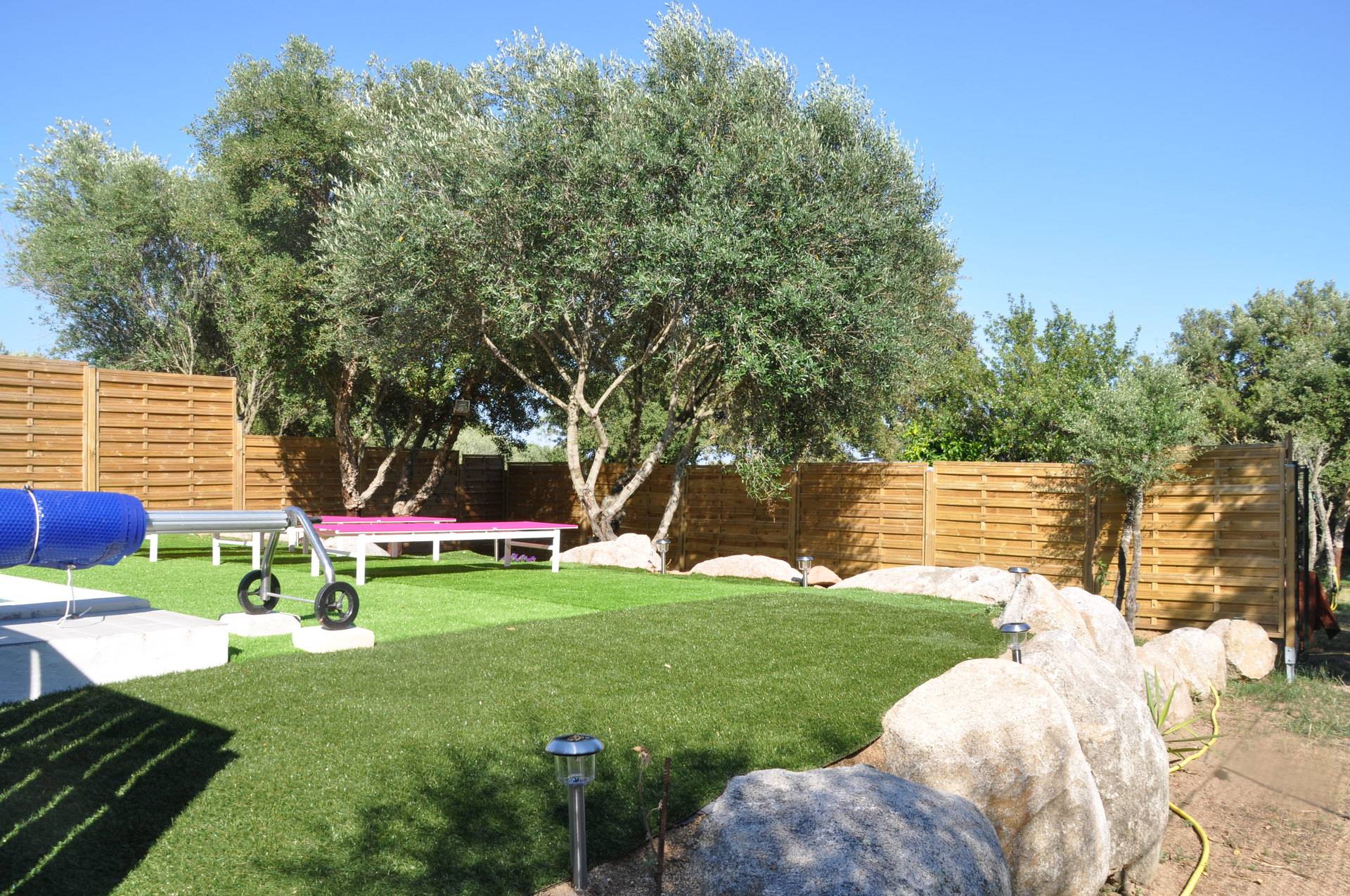Location d'une villa neuve entièrement climatisée équipée d'une piscine privée située à 3 km de la baie de PINARELLO et à 2,5km de la célèbre plage du CABANON BLEU. Endroit très calme sur un terrain d'oliviers et de chênes-liège. La villa est neuve et possède une cuisine entièrement équipée, une terrasse privée avec coin barbecue et un terrain de boules privé pour les soirs d'été après la baignade. La villa se situé seulement à 10km du centre ville de PORTO VECCHIO et à 25 km du port de BONIFACIO. Il y a également les piscines naturelles avec un site magnifique à seulement 5 km de la villa.