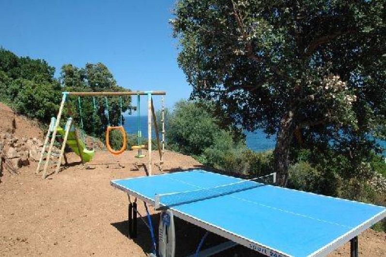 Surplombant la mer, arborée du maquis odorant et d'un jardin méditerranéen très fleuri, nos locations en mini-villas vous offrent toutes un très grand confort, agréables à vivre toute l'année. Vos vacances en Corse en toute discrétion et intimité. Complexe particulièrement adapté aux couples et aux familles : Vidéothèque, bibliothèque enfants et adultes, jeux sociétés, espace pleine nature, aire de jeux, table de ping-pong, jeux de badminton et de pétanque.