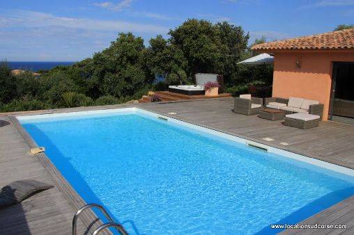 Villa de standing, 200 m2 de plain pied avec de nombreuses baies vitrées donnant sur une terrasse bois de 200 m2 intégrant une piscine (chauffée) privative de 11 x 5, un SPA 6 places, vue mer et montagne sur un terrain arboré de 2500 m2. 300 mètres de la plage à pied, pas de vis à vis.