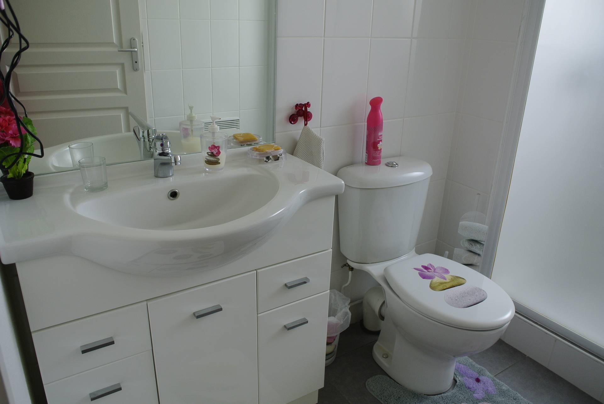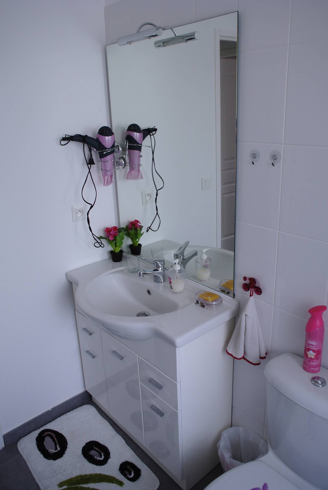 à l'étage: 2 chambres (une avec un lit double, une avec 2 lits simples), salle de bain avec douche