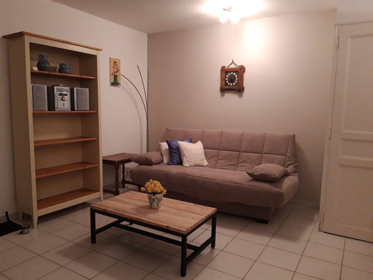 "La Garonnette 5" peut accueillir jusqu'à quatre personnes. Il y a une chambre avec un lit double (1,6 x 2 m) et une chambre d'enfants avec un lit mezzanine (2x 0,90 x 1,90 m). La cuisine est entièrement équipée. Le salon-salle à manger a un canapé confortable (extensible 1,4 x 1,9 m), ainsi qu'une télévision satellite et un distributeur à musique. La salle de bain a une douche et une toilette séparée. La petite villa est équipée d'une climatisation et d'un lave-linge. Une place de parking est disponible pour les vacanciers. Profitez du magnifique jardin (clôturé) et