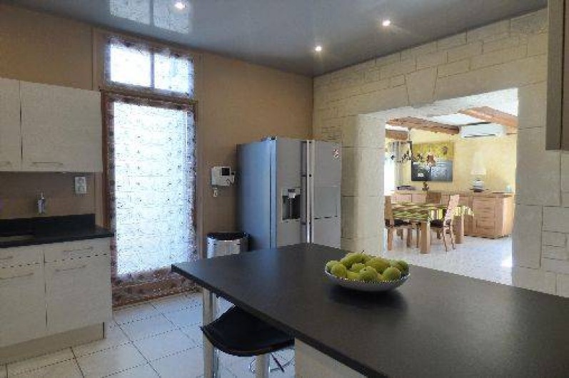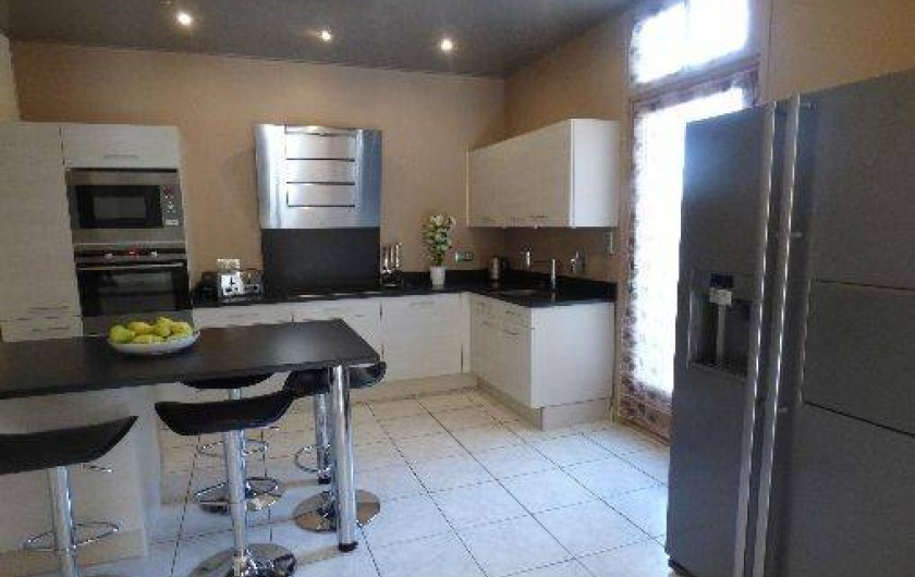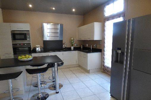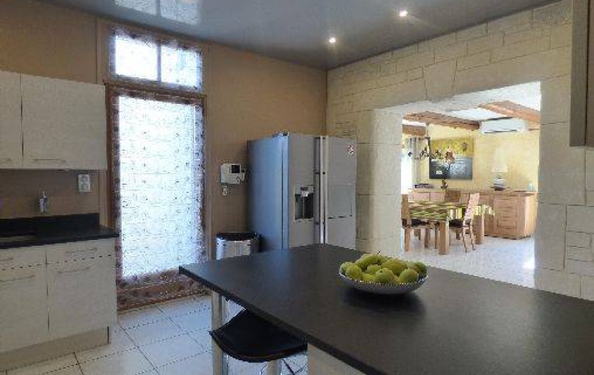 Cuisine US de 20m2 haut standing donnant sur salle à manger de 40m2.