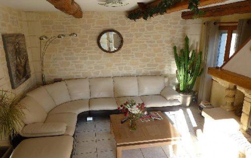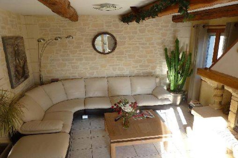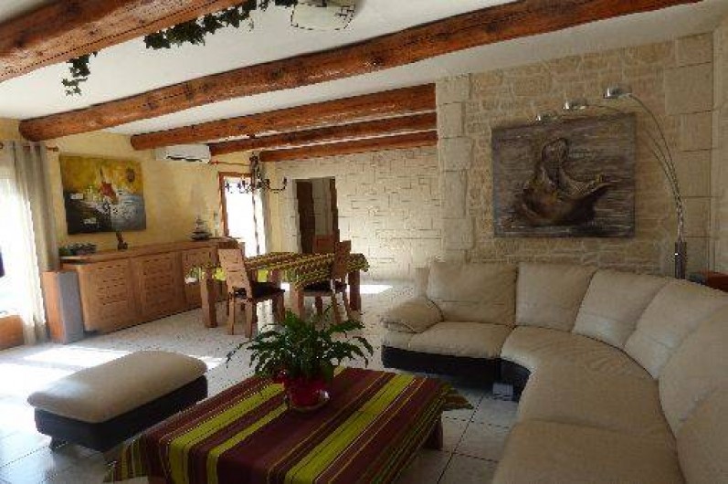 Grand salon avec canapé d'angle et TV en 132 cm.