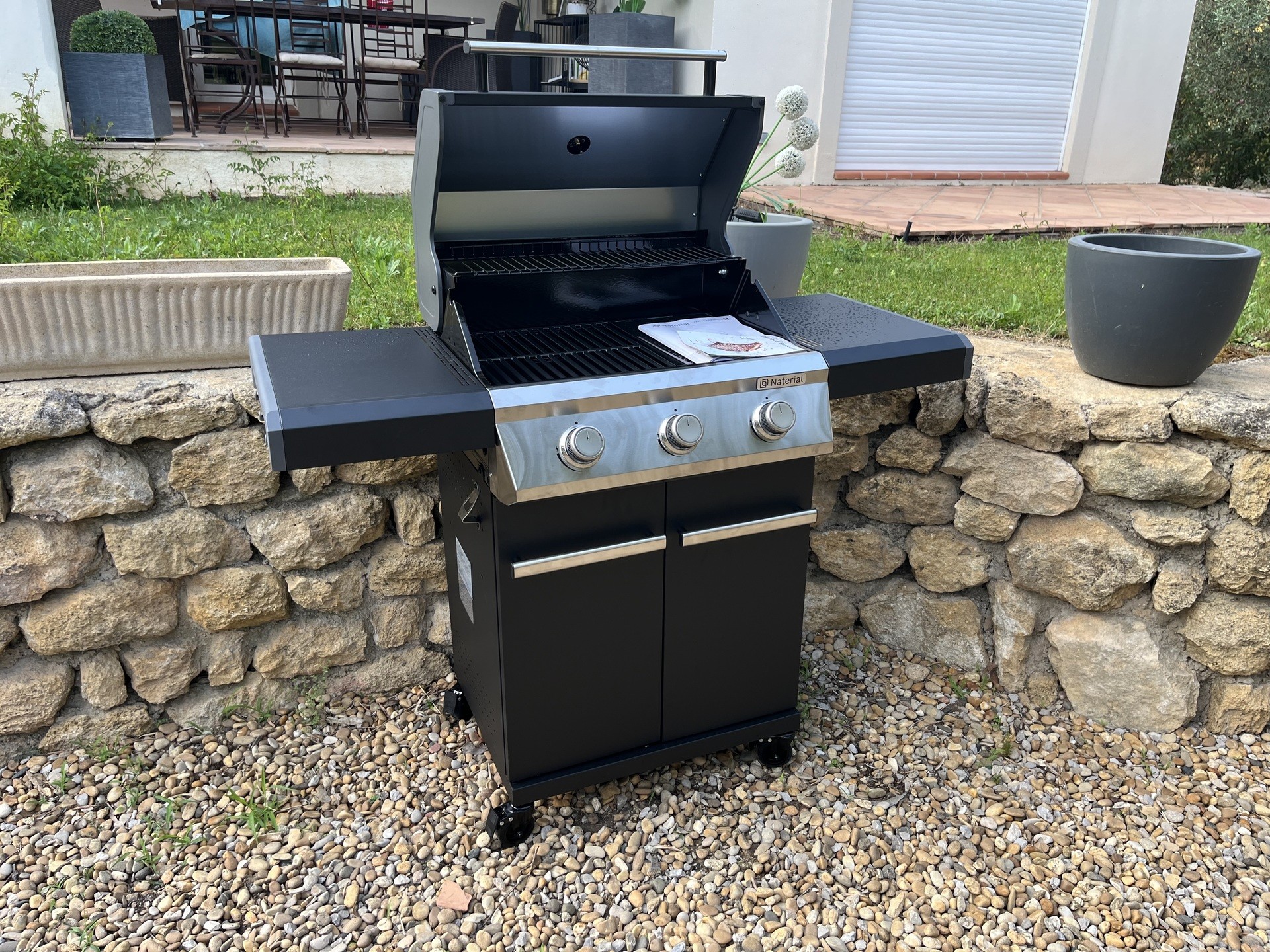 terrasse avec barbecue donnant sur un parc de 4000m2 avec piscine luxe 6x12, arbore et planté d'arbustes méditerrannéens aux fleurs parfumées, colorées et abondantes.