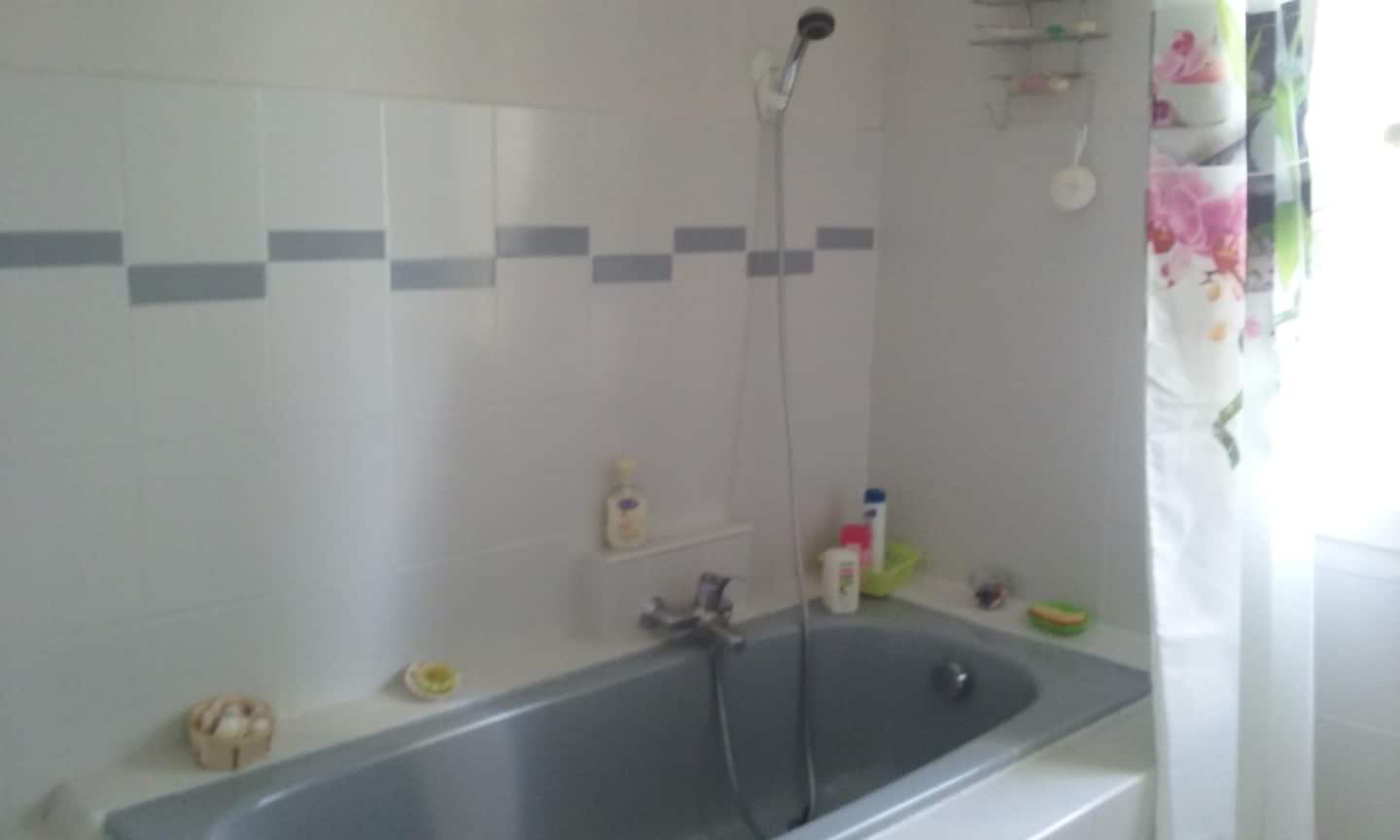 La cuisine possède un frigo- congélateur une gazinière et un lave-vaisselle.