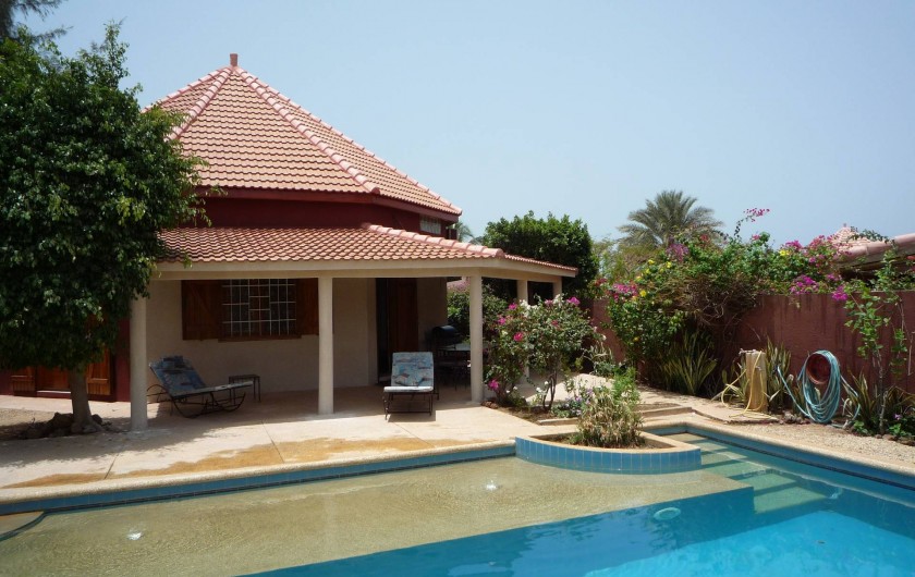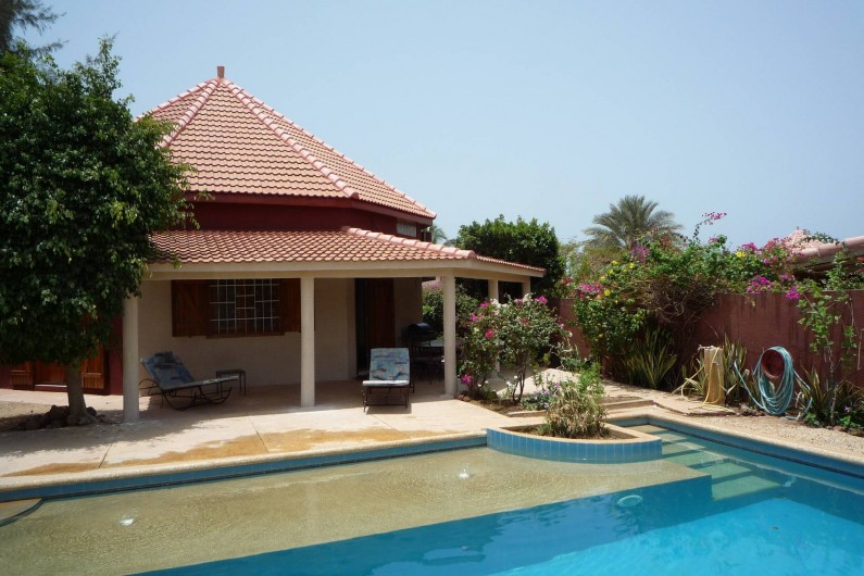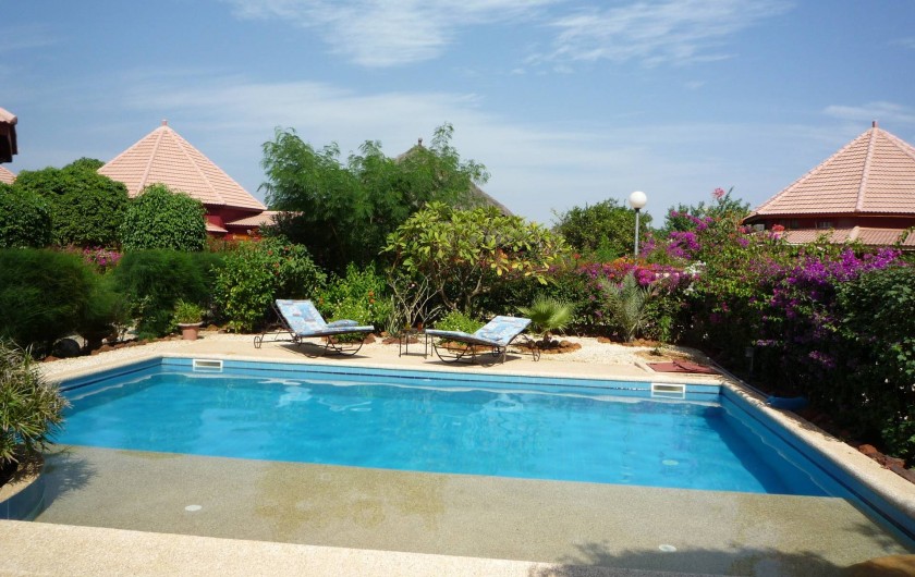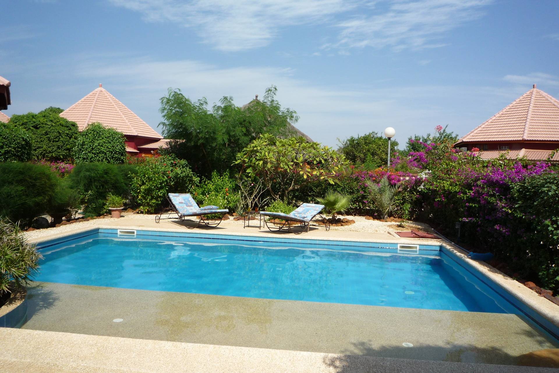 6 bains de soleil autour de la piscine vous feront profiter du soleil du Sénégal.