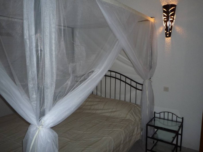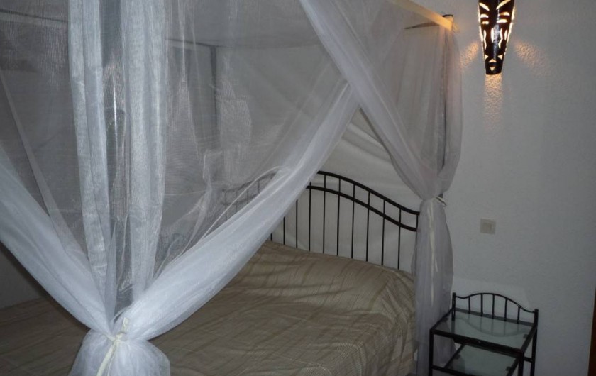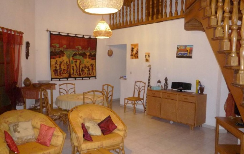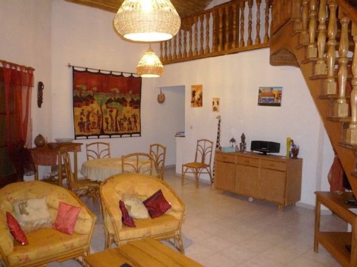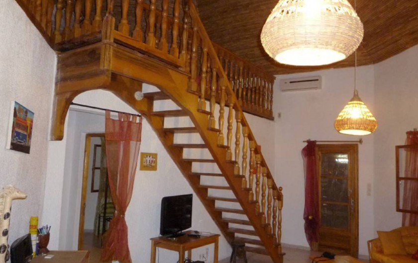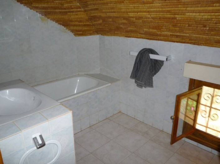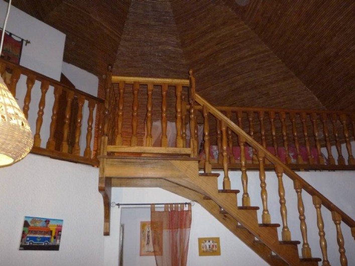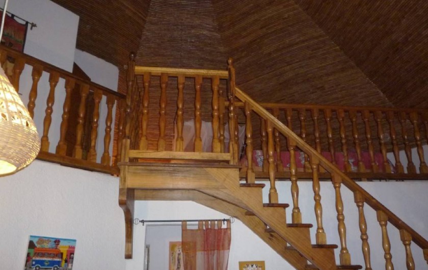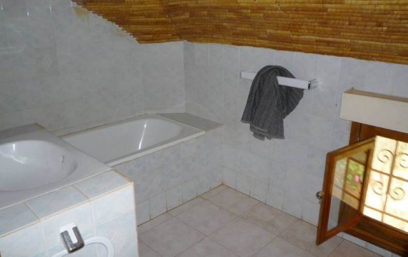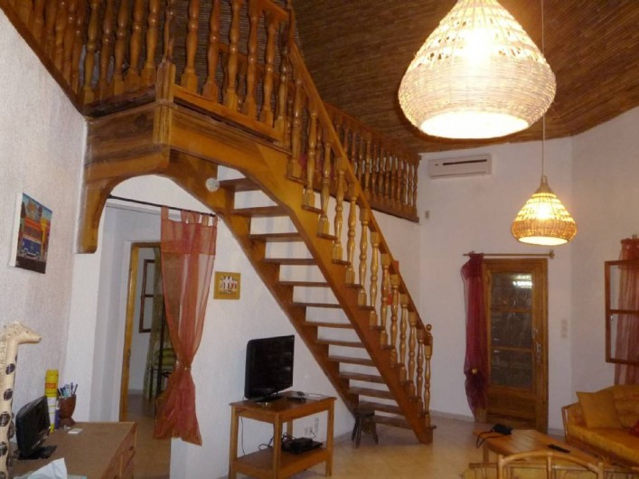 Villa pour 6 personnes comprenant trois chambres dont une en mezzanine avec sa salle de bain et un wc séparé, en bas une douche et un wc séparé.