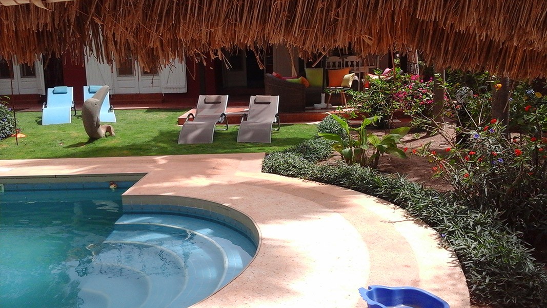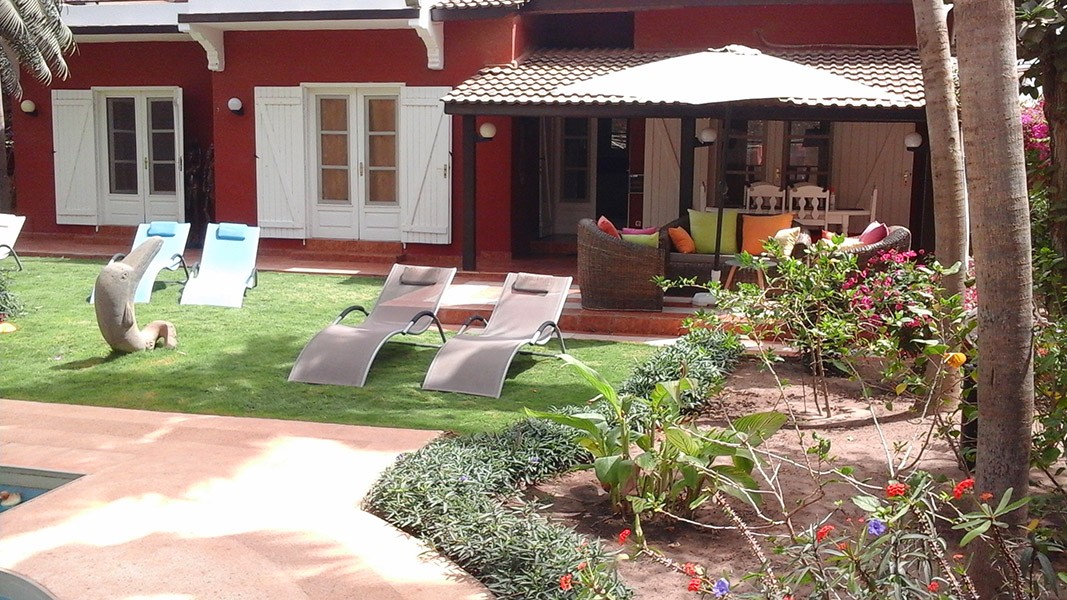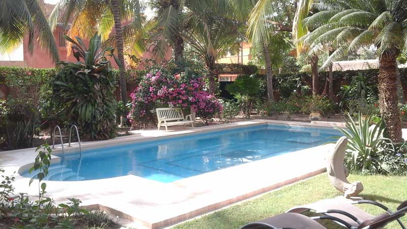 Villa typique, close, avec grande piscine et magnifique jardin tropical de 1000 m2 . tout est au locataire et à lui seul. grande terrasse avec bar et coin repos. groupe électrogène. nombreuses attractions et excursions. confort européen et l'âme africaine,villa situee pres d'un village acceuillant,a 200m d'une plage de sable fin,villa avec piscine privee.la villa est climatisee,deux chambres sont equipees de coffre fort;