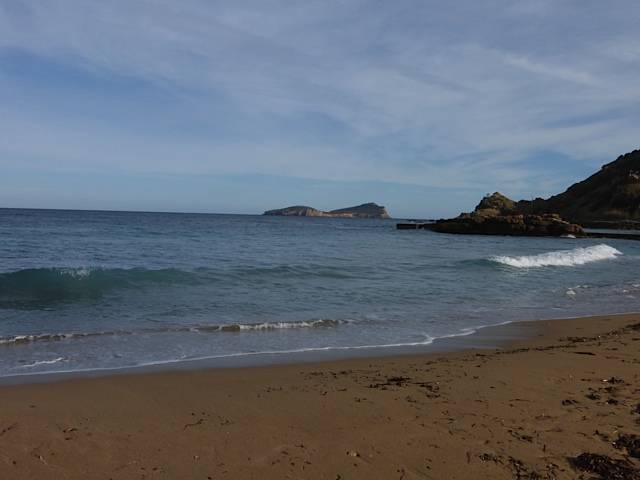 en cala verde de Es figueral completement protegé du bruit des club de vacances proches par : bois de pins, très tranquile vu sur amandiers, moutons verdure...