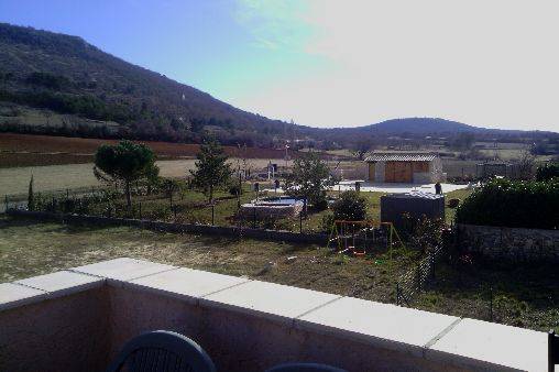 petite terrasse a l' arrière vue sur colline ( décollage de parapente et atterrissage )