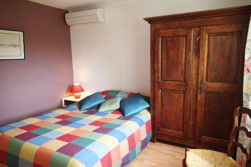 -1 chambre avec 1 lit en 160 cm, penderie, vasque, totalement indépendante, accessible uniquement par le jardin (non climatisée) disposant d’1 coin détente.