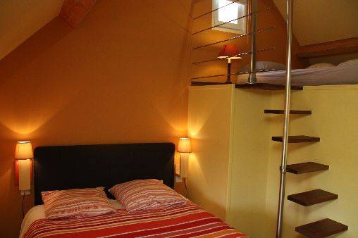 et 27 km de Guise. Jardin privatif (400m²) avec bassin d'agrément sécurisé. Terrasse. RDC : grande pièce à vivre comprenant s. à manger et salon avec accès direct sur les extérieurs. Cuisine. WC avec douche et lavabo. Sur ½ étage : 1 ch. (1 lit 2 pers 140x190). 1 ch (1 lit 2 pers 140x200) avec mezzanine comprenant 1 lit pour 1 pers (80x190). SDB (baignoire et douche) avec WC. En sous-niveau : « suite parentale »1 ch. (1 lit 2 pers 160x200) douche italienne, kitchenette et salon privatifs, accès direct sur une terrasse privative. Draps offerts et lits faits à l'arrivée. Linge de toilette : 4€/pers. Combiné lave-linge sèche-linge. Ménage de fin de séjour en option.