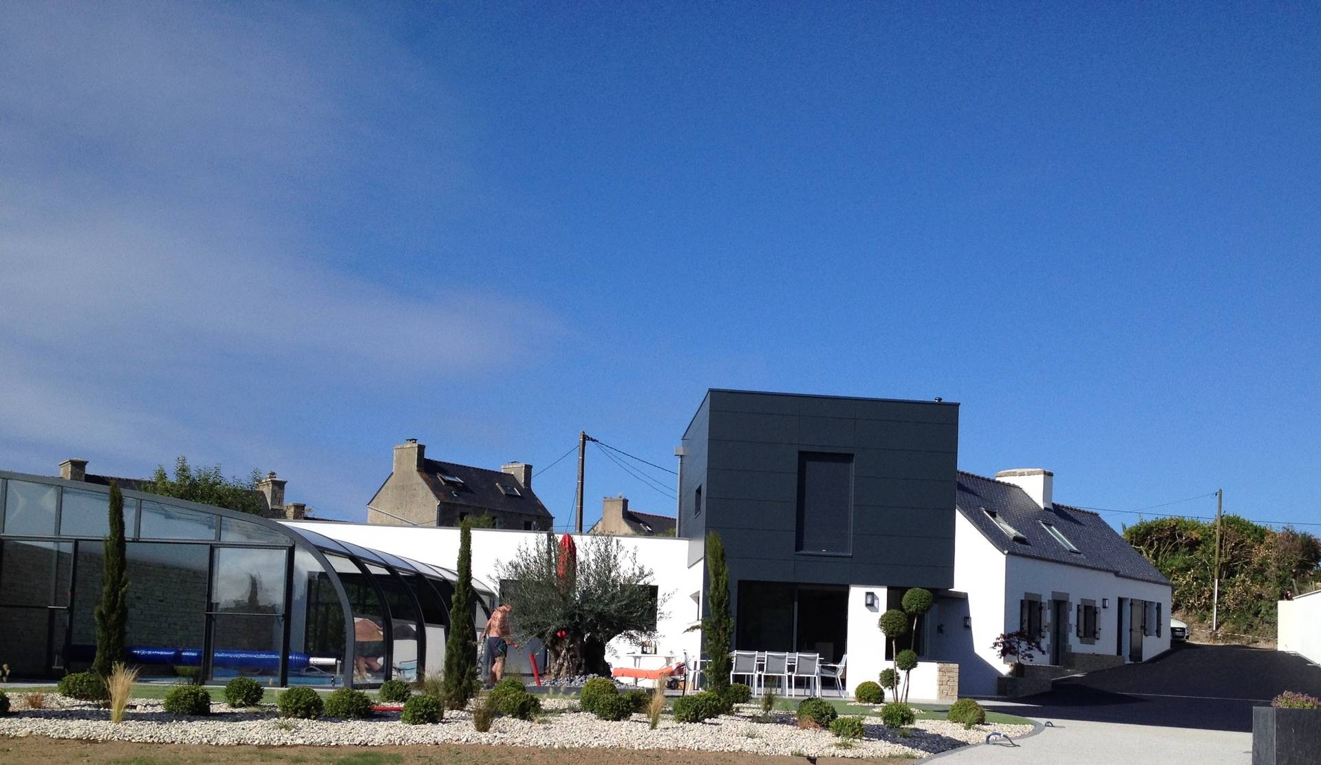 Belle villa rénovée en 2015dans un style contemporain et ancien, nichée dans un coin très tranquille avec vue sur le château de Kerouzéré ( XVe), chemins de randonnée à proximité, proche des plages et du port de Moguériec, ville la plus proche 3 km Cléder tous commerces. Elle offre la tranquilité avec la piscine couverte ou ouverte sur l'extérieur dans un jardin arboré et ses térasses.