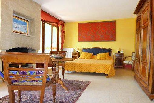 Une chambre principale lit 1,60 x 2 m avec un coin bureau, bibliothèque avec livres pour grands et petits à disposition, un lit de 90 x 1,90 m une sortie sur un grand balcon et vue sur le grand Baou et la piscine.