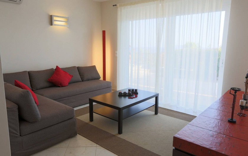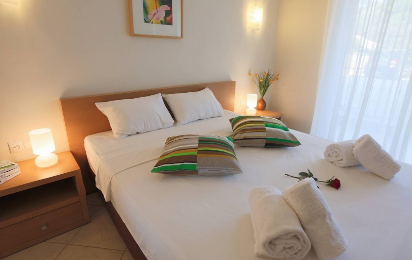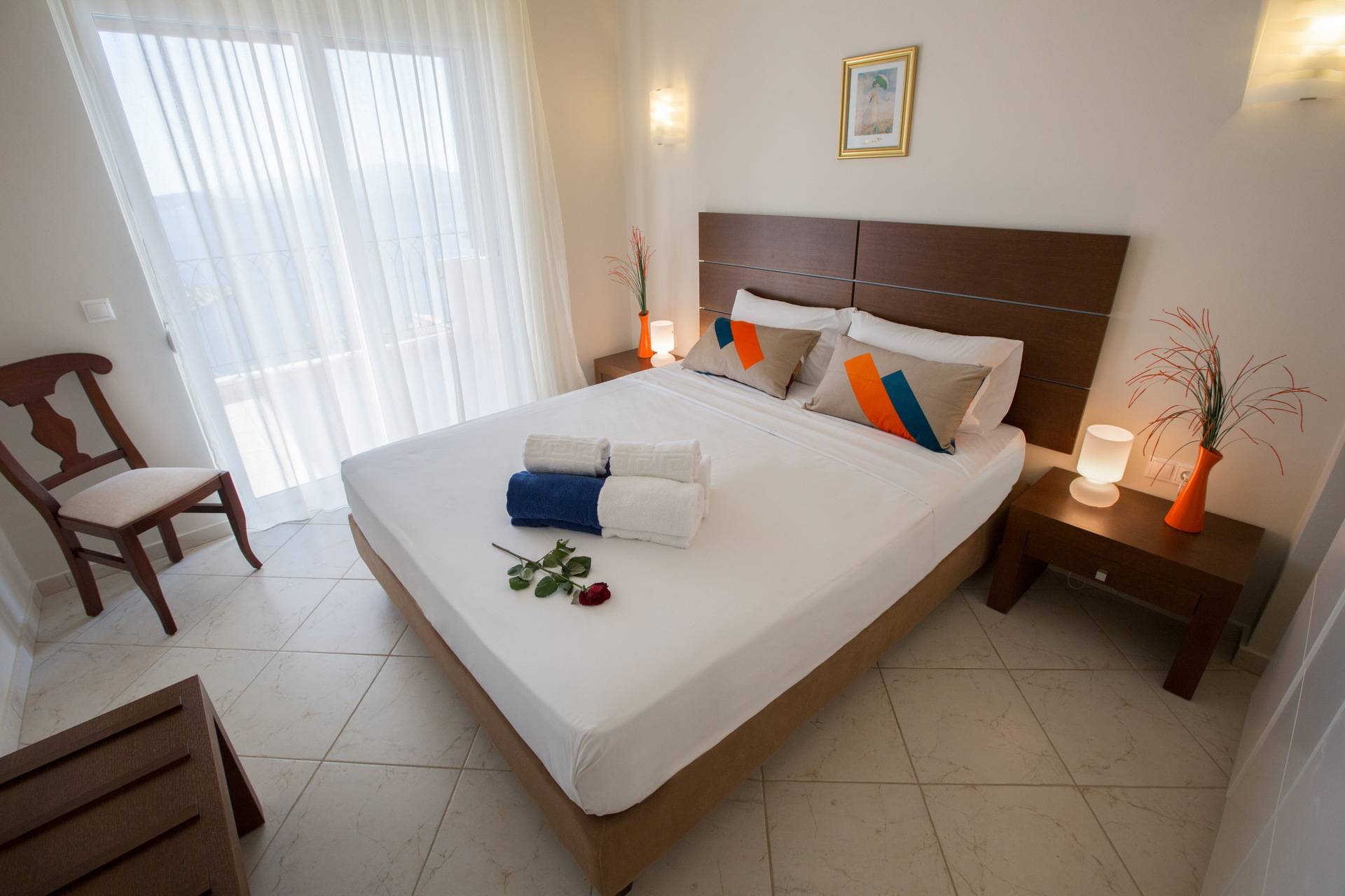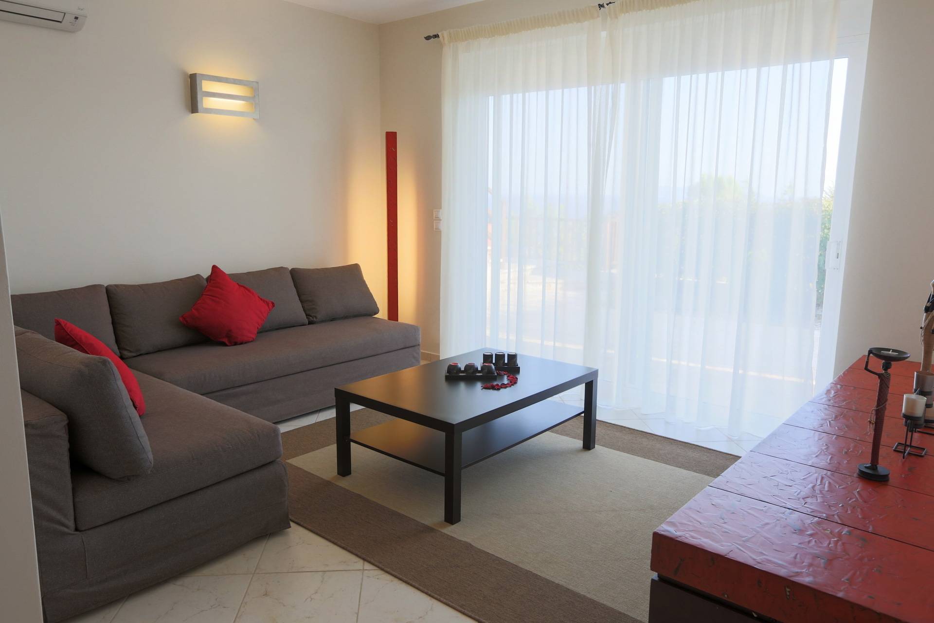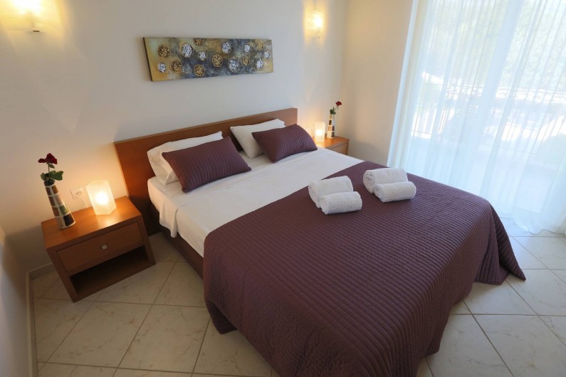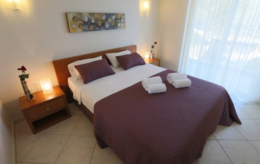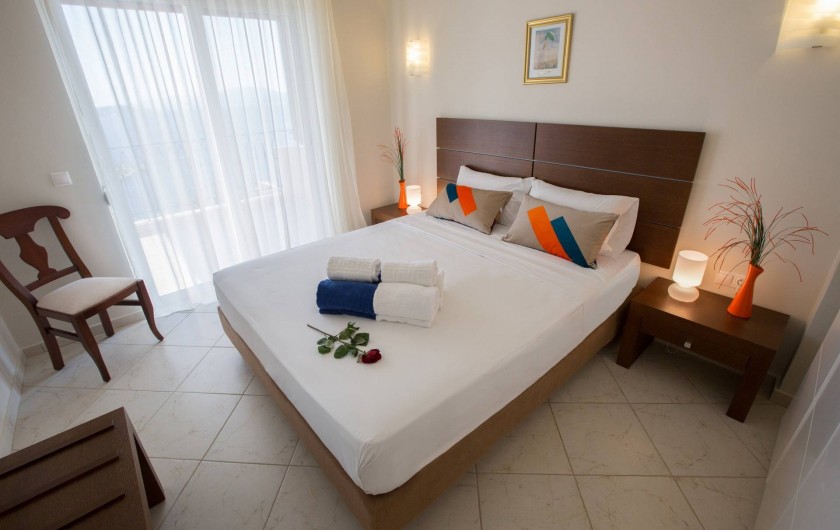 Au rez de chaussée il ya 2 chambres très confortables avec lits king size. Les matelas de luxe qui sont présents dans toutes les chambres vous accueilleront pour votre repos et vos rêves après une belle journée de navigation ou de visites autour de l'île de Lefkada. Cet étage dispose de 2 salles de bains avec douche chacune. Une des chambres a sa propre salle de bain privée. Il ya aussi une sortie de l'une de la chambre directement sur la pelouse et à la piscine. Enfin un deuxième salon permet de dormir 2 à 4 personnes supplémentaires grâce à des canapés-lits et matelas supplémentaire potentiel, nous pouvons ajouter sur demande.